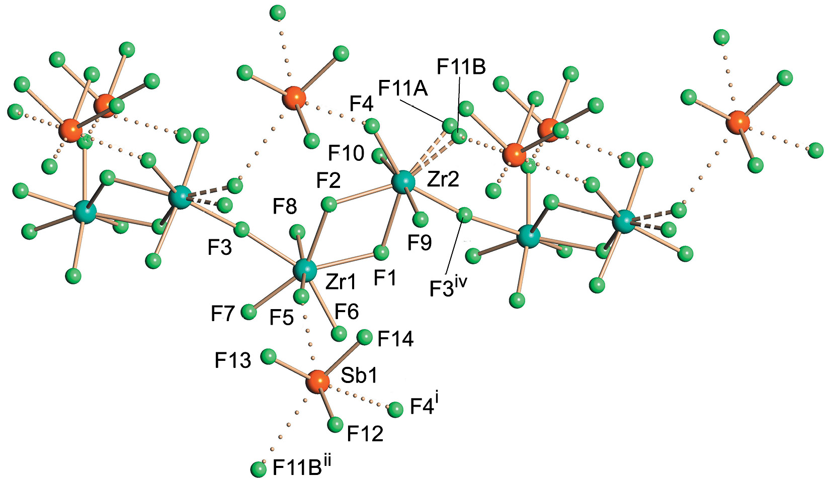 Sb1···Zr2i | 4.4793(5) | Sb1—F5v | 2.617(3) | Zr2—F5iv | 2.006(3) |