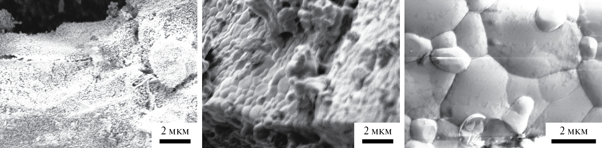 Рис. 3. Морфология образцов титаната тулия: слева направо температура отжига 1000, 1200 и 1500°С