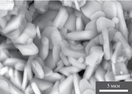 Рис. 6. Микрофотография гексаалюмината празеодима магния, полученного золь-гель методом синтеза и отожженного при температуре 1600°C.