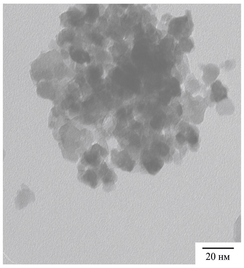 Рис. 2. Микроснимок образца 0.5% PdO/Ce0.85Zr0.15La0.05O2–δ, полученный методом просвечивающей электронной микроскопии.