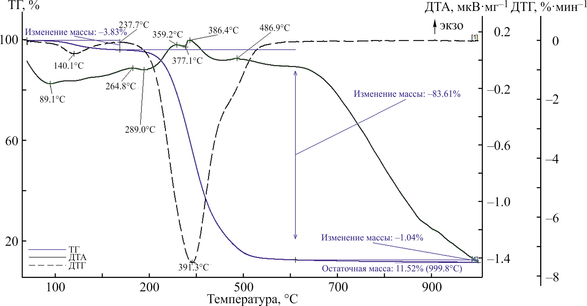 Рис. 4. Кривые ТГ-ДТА для TGDE-12sb.