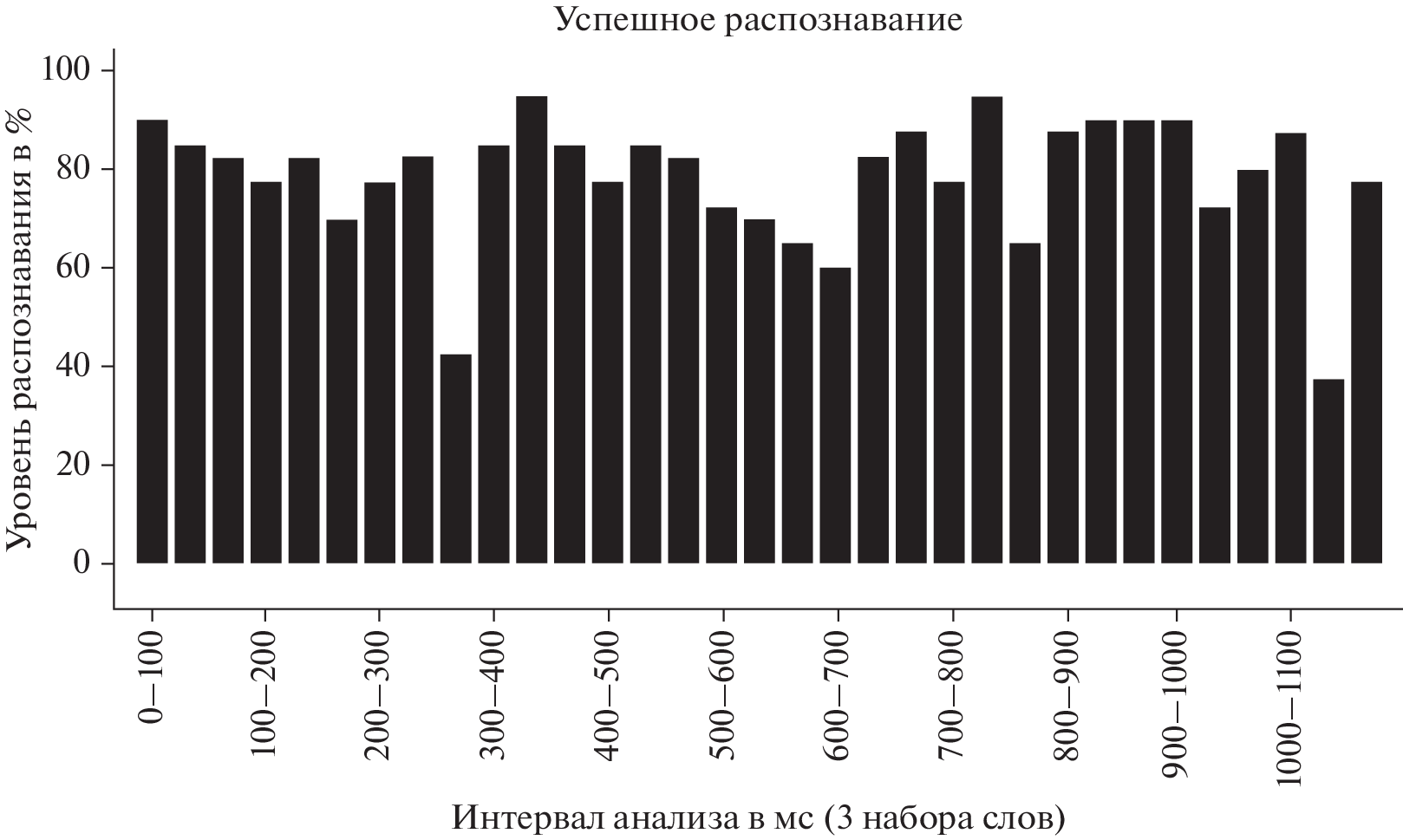 Распознавание устной речи по данным ЭЭГ и МЭГ является первым шагом разработки систем МКИ и ИИ для дальнейшего использования их при декодировании воображаемой речи. Большие достижения в этом направлении были сделаны с использованием ЭКоГ и стерео-ЭЭГ. В то же время существует мало работ на эту тему по анализу данных, полученных неинвазивными методами регистрации активности мозга. Наш подход основан на оценке связей в пространстве сенсоров с выделением специфического для данного отрезка речи паттерна связанности МЭГ. Мы проверили свой метод на 7 испытуемых. Во всех случаях наш конвейер обработки был достаточно надежен и работал либо без ошибок распознавания, либо с небольшим количеством ошибок. После “обучения” алгоритм способен распознавать фрагмент устной речи при единственном предъявлении. Для распознавания мы использовали отрезки записи МЭГ 50–1200 мс от начала звучания слова. Для качественного распознавания требовался отрезок не менее 600 мс. Интервалы больше 1200 мс ухудшали качество распознавания. Полосовая фильтрация МЭГ показала, что качество распознавания одинаково эффективно во всем диапазоне частот. Некоторое снижение уровня распознавания наблюдается только в диапазоне 9–14 Гц.