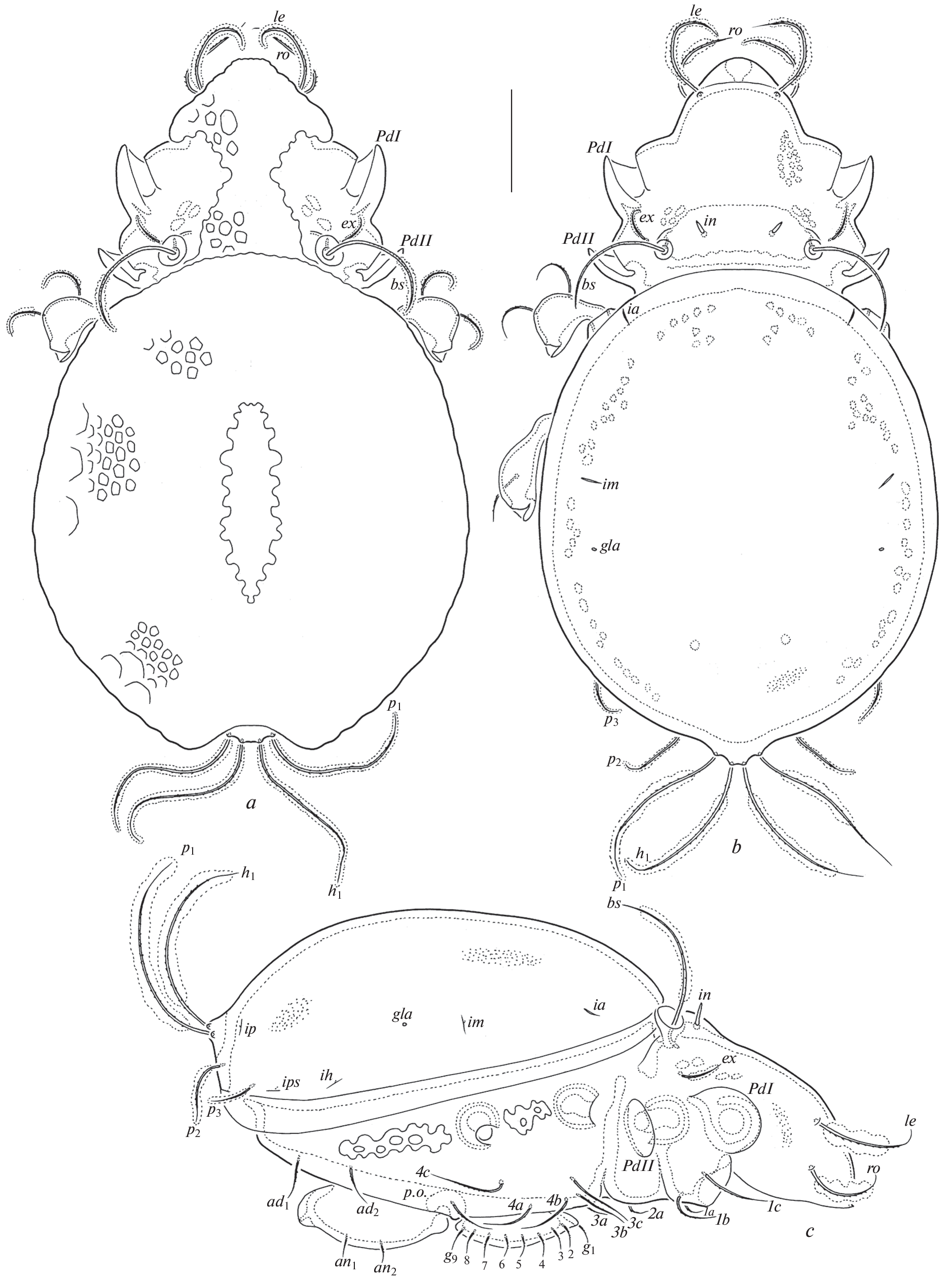 - Norton R.A., 1977. A review of F. Grandjean’s system of leg chaetotaxy in the Oribatei (Acari) and its application to the family Damaeidae // Dindal D.L., ed. Biology of oribatid mites. Syracuse, SUNY College of Environmental Science and Forestry. P. 33–61.