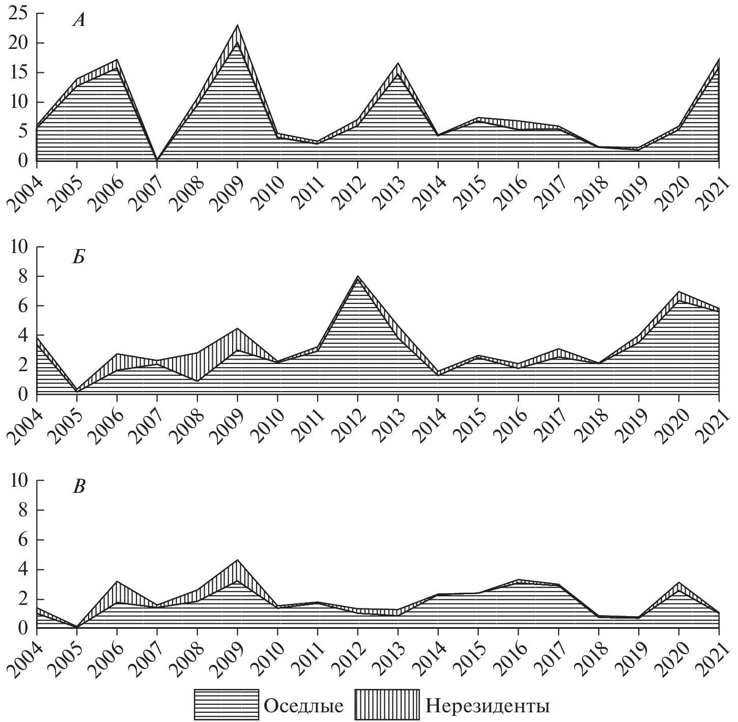 - Калинин А.А., Олейниченко В.Ю., Купцов А.В., Александров Д.Ю., Демидова Т.Б., 2018. Пространственная изменчивость оседлого и нерезидентного населения мелких млекопитающих в лесном массиве // Зоологический журнал. Т. 97. № 4. С. 474–485. [Kalinin A.A., Oleinichenko V.Y., Kouptsov A.V., Aleksandrov D.Y., Demidova T.B., 2018. Spatial variability of resident and nonresident populations of small mammals on a forest plot // Biology Bulletin. V. 45. № 9. P. 1028–1038].