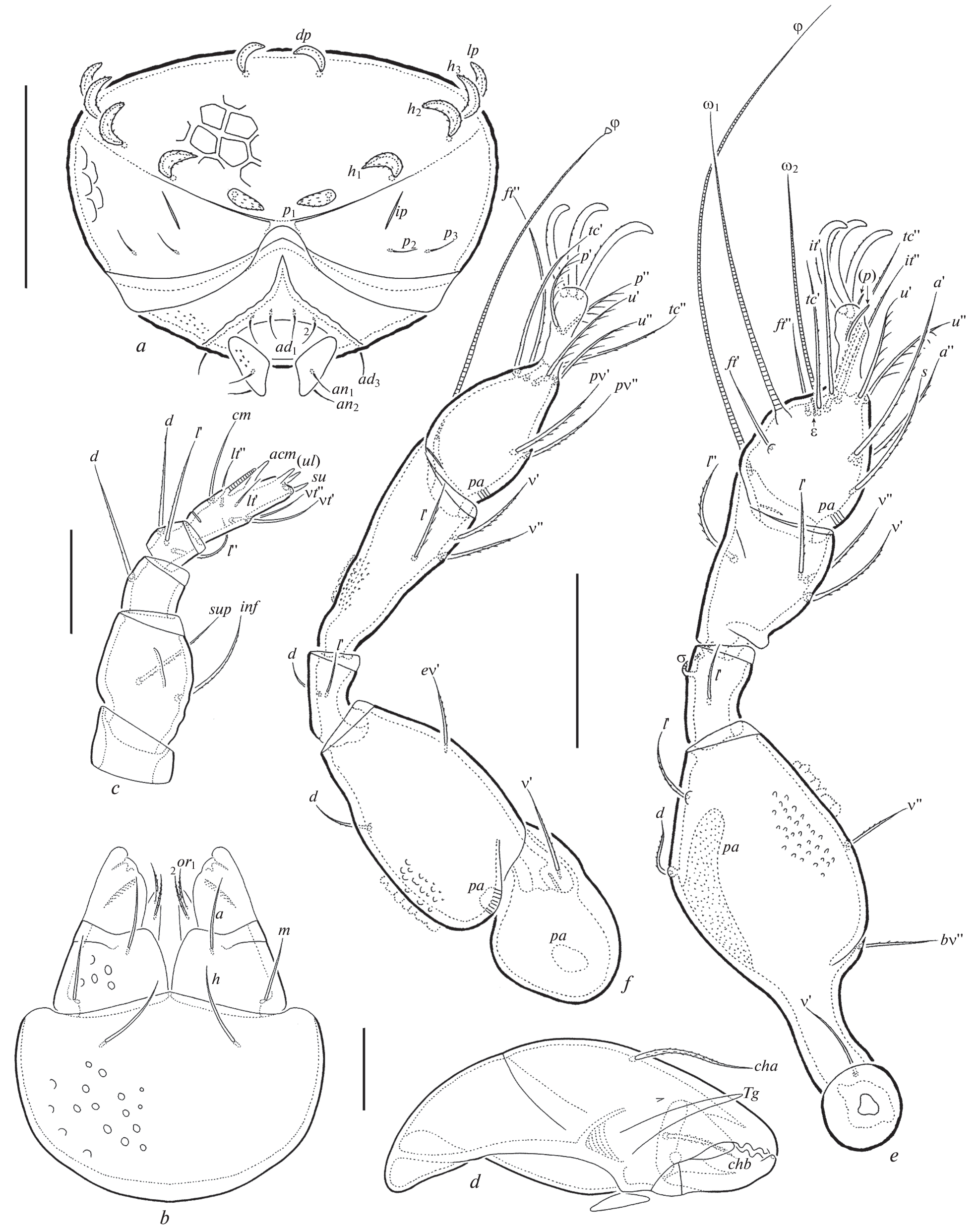 - Norton R.A., 1977. A review of F. Grandjean’s system of leg chaetotaxy in the Oribatei (Acari) and its application to the family Damaeidae // In: Dindal D.L., editor. Biology of oribatid mites. Syracuse: SUNY College of Environmental Science and Forestry. P. 33–61.