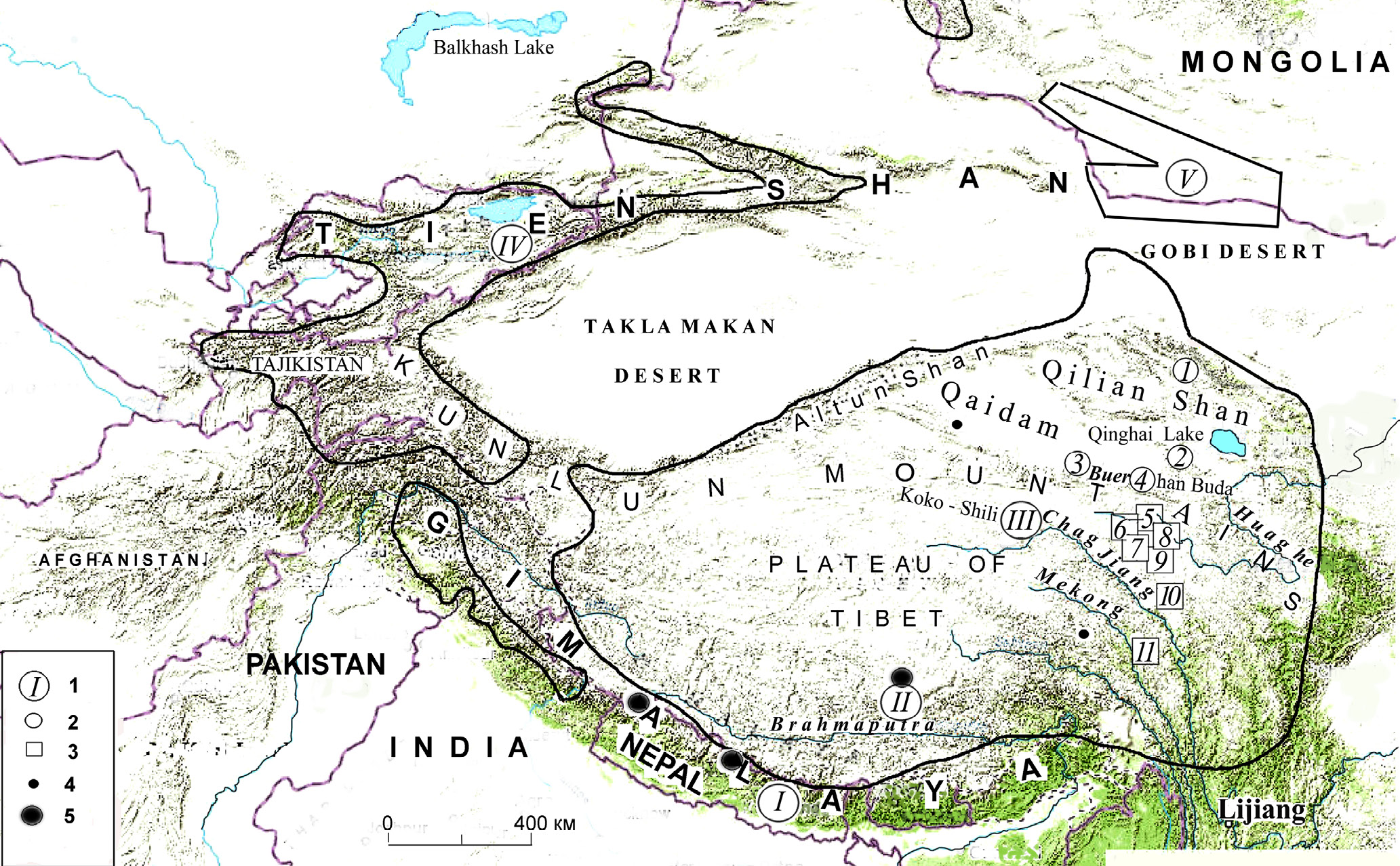 На самом обширном в мире Тибетском плато, со средней высотой 4877 м над ур. м., сохранилась особая фауна позвоночных с высоким уровнем эндемизма. Эта фауна формировалась с раннего плиоцена в процессах вселения видов из соседних областей, их последующих изменений под влиянием географической изоляции, горных поднятий и климатических изменений в плейстоценовых ледниковых циклах (Zhang, Zheng, 1981; Yang et al., 2009).