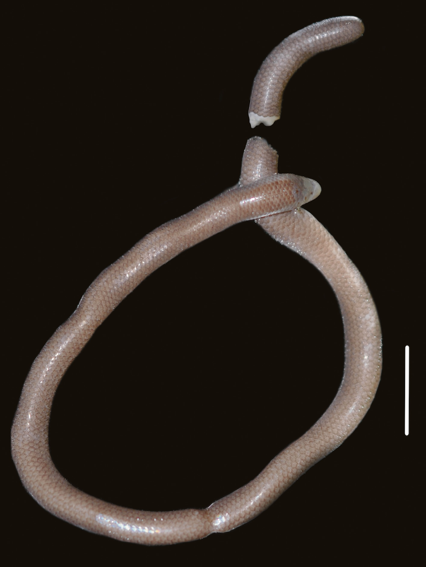 Рис. 3. Голотип Dibamus elephantinus sp. n. (ZMMU Re-17894, самец). Масштаб 10 мм. Фото Клюкина Н. С.