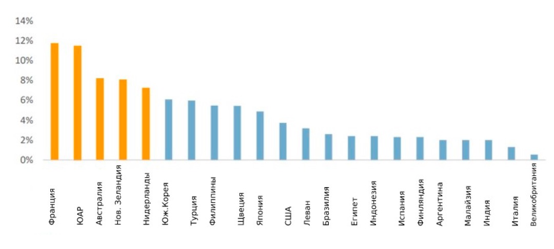 Рис. 4. Доля франчайзинга в общем ВВП стран мира
