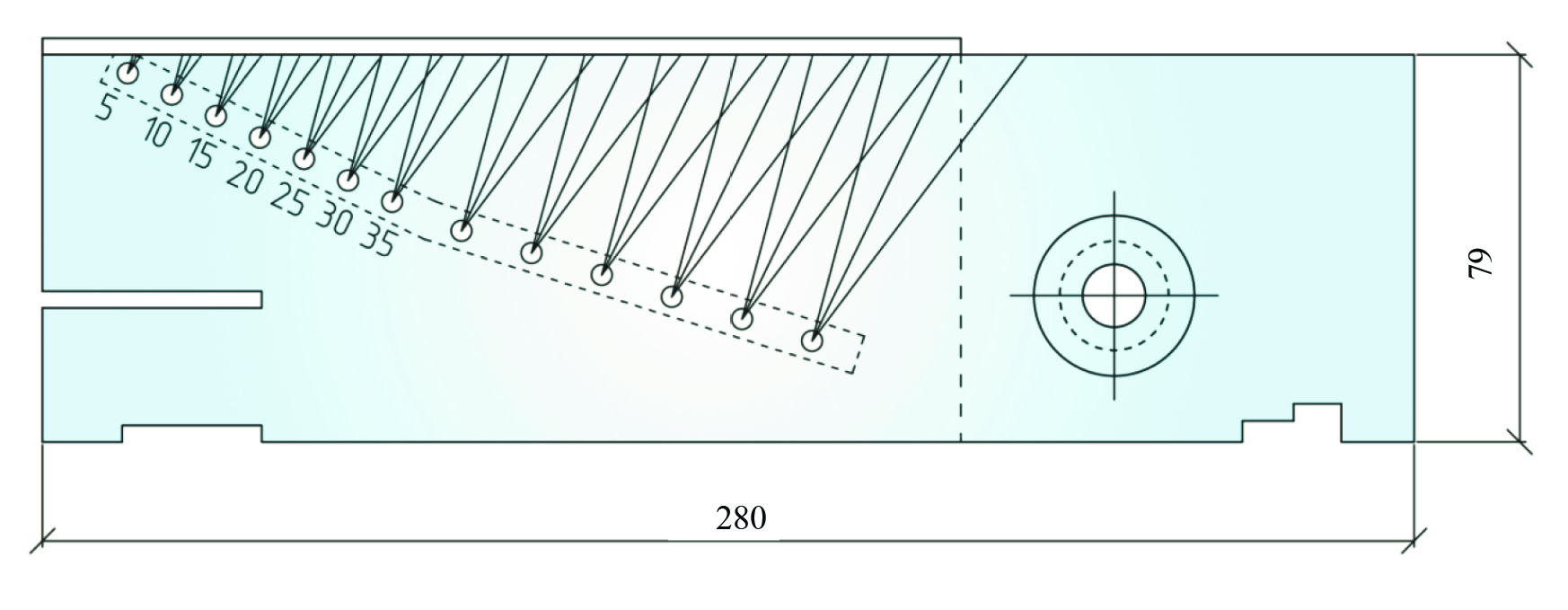 Образец СО-1 изготавливался из плексигласа (полиметилметакрилата) (рис. 3). По БЦО-сверлениям диаметром 2 мм измерялась «условная» чувствительность пары ПЭП—дефектоскоп. Так называлась максимальная глубина расположения БЦО (в миллиметрах), которое может быть выявлено при выбранных параметрах оборудования. Также, образец СО-1 применялся для проверки и настройки глубиномера по сигналу от горизонтального пропила. Наконец, по образцу СО-1 можно было оценить лучевую разрешающую способность пары ПЭП—дефектоскоп. Для этого использовались пазы и донная поверхность — для прямых ПЭП и цилиндрические сверления разного диаметра — для наклонных ПЭП. Отметим, что в действующем стандарте [17] обязательная проверка разрешающей способности не предусмотрена. Также отметим, что образец СО-1 в первую очередь предназначался для работы с призмами (ПЭП) из плексигласа, в то время как в последние годы для изготовления призм часто используются материалы с другими акустическими свойствами.