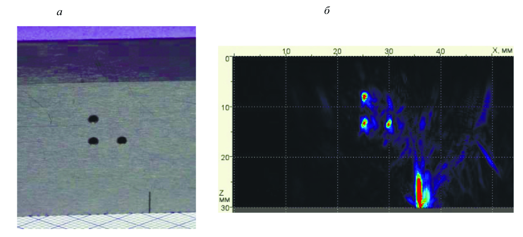 Рис. 21. Выявление БЦО диаметром 1,5 мм и вертикального паза глубиной 4 мм с применением ЦФА [5].