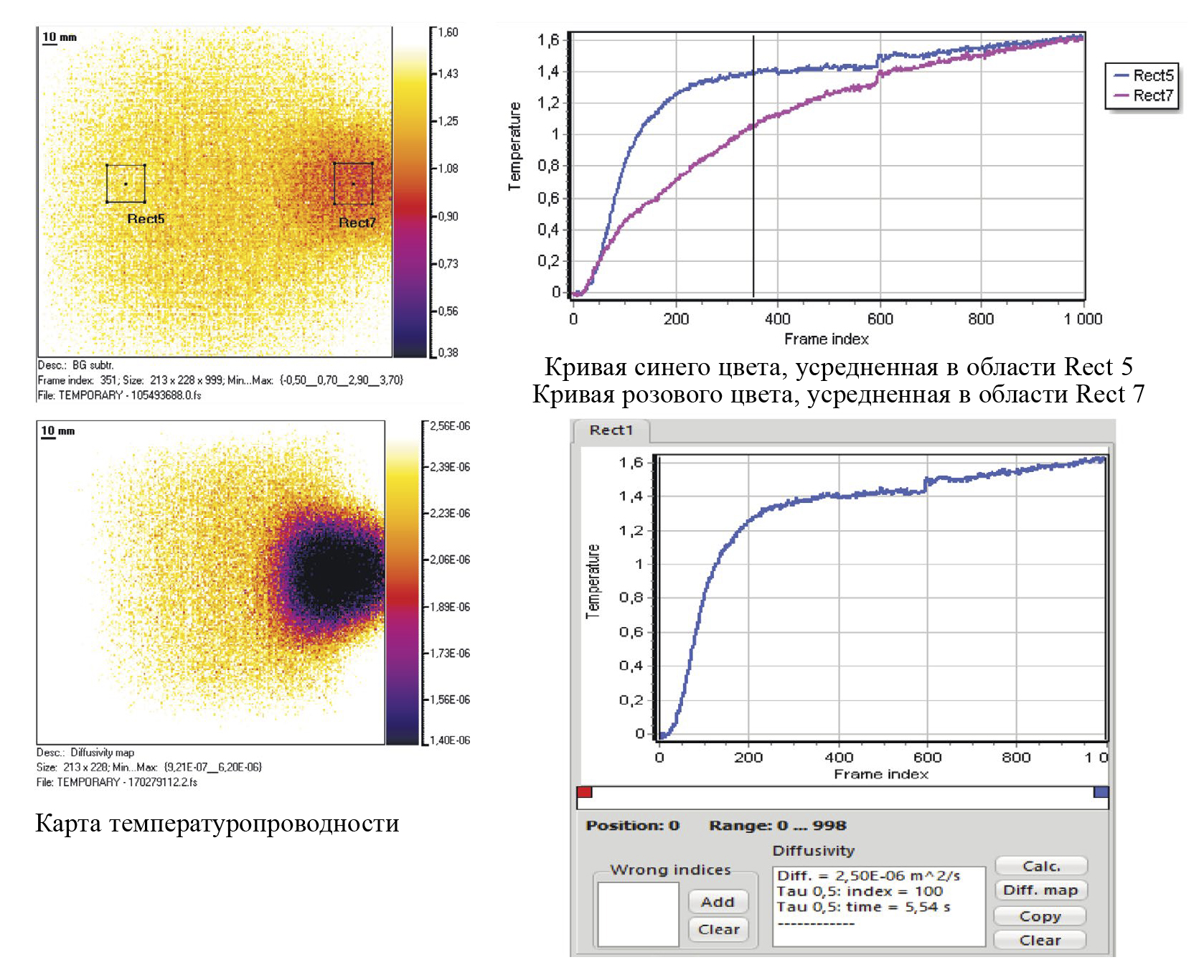В настоящей работе для повышения информативности и достоверности ТК помимо стандартного анализа исходных термограмм использовали построение карт температуропроводности в качестве специфического алгоритма обработки данных.