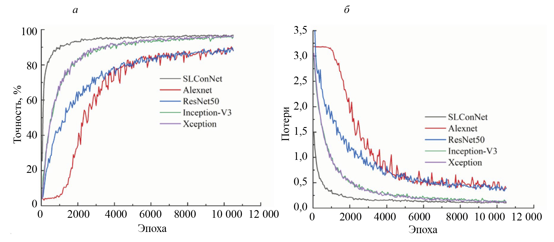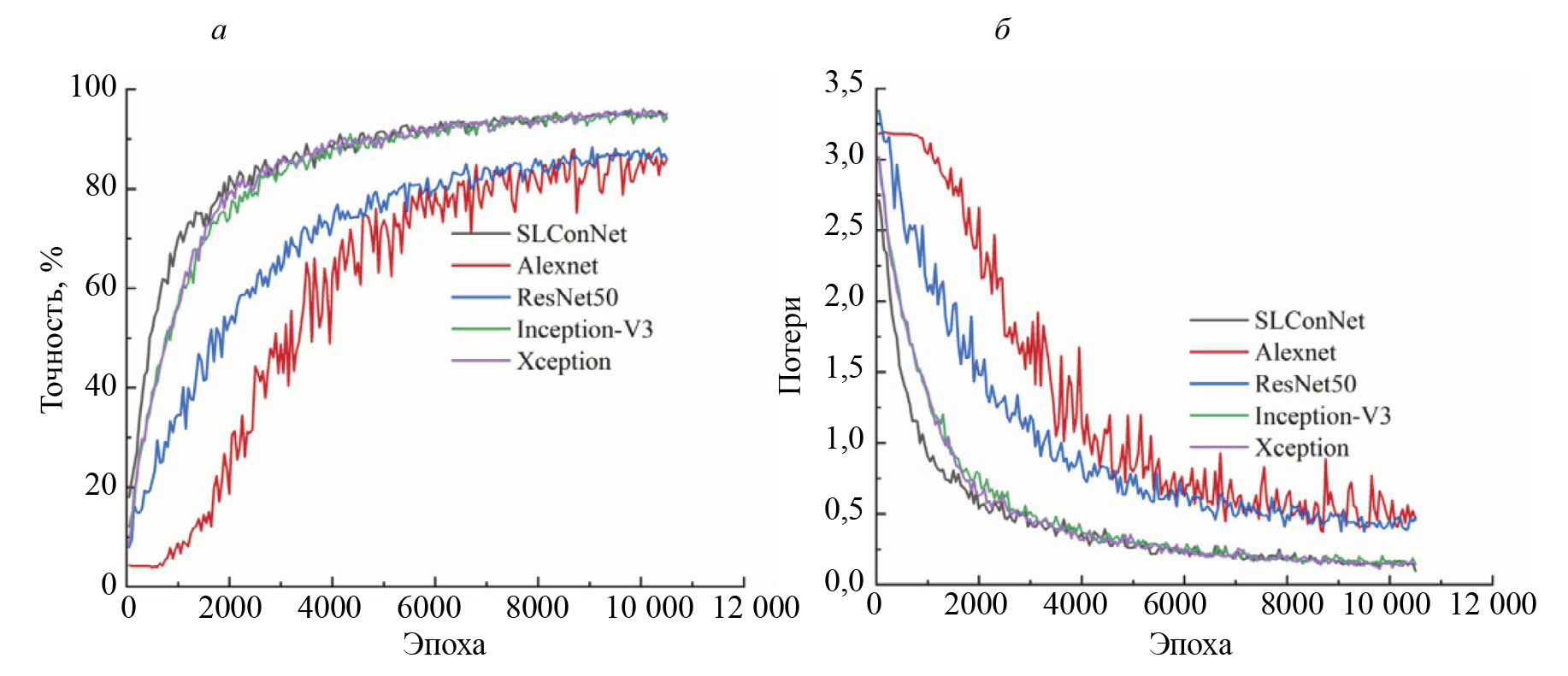 Поэтому модель SLConNet обучается с коэффициентом усиления 0,8 для всех масштабирующих слоев. В следующем разделе результаты обучения сравниваются с моделями AlexNet [41, 42], ResNet50 [43], Inception-V3 [44] и Xception [45].