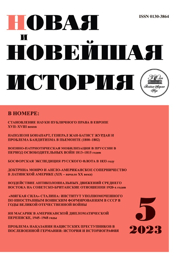 The Consulship of Napoleon Bonaparte is often presented as a time of his political triumph as both politician and legislator. However, this very stereotypical assessment requires further clarifications. As the latest research suggests, the whole period between the Brumaire and the proclamation of the Empire was a period of difficult search for new methods of governance under very difficult circumstances. One of the serious problems in the formation of the new borders of Napoleonic France in the early years of the nineteenth century continued to be banditry (brigandage). In a number of regions, this phenomenon had a distinct political colouring. In the French political lexicon of the era, it referred to collective violence of any kind, anti-state actions, as well as various forms of criminal robbery. The situation was most acute in the peripheral regions, particularly in Piedmont. Although the flames of the acute civil conflict of 1799 had subsided here, yet the causes of this mass phenomenon were extremely deep. The author aims to analyse the ways of solving the problem of banditry in the context of the overall Napoleonic policy, to show the role of the French administration and, in particular, of General Jean-Baptiste Jourdan in this process during the formation of new institutions of power in the Consulate period. Drawing on the archival collections of the French Ministries of General Police and Justice, the Piedmont General Administration from the French National Archives, as well as some materials from the archival collections of the French Ministry of Foreign Affairs, he attempts to reconstruct a set of measures to eradicate banditry. The new authorities, and above all the chief administrator of Piedmont, General Jourdan, as well as the prefects and mayors, had to resort both to the tactics of “mobile columns” and extraordinary justice, but also to seek compromise with the rural oligarchy, the parish clergy and the peasant masses in order to maintain the fragile social order. What is also significant is that the experience gained by the French in the fight against banditry in Piedmont was later successfully disseminated to other regions of Italy, and that it was this experience that largely served as the basis for the formation of Napoleon's policy of “cultural imperialism”.