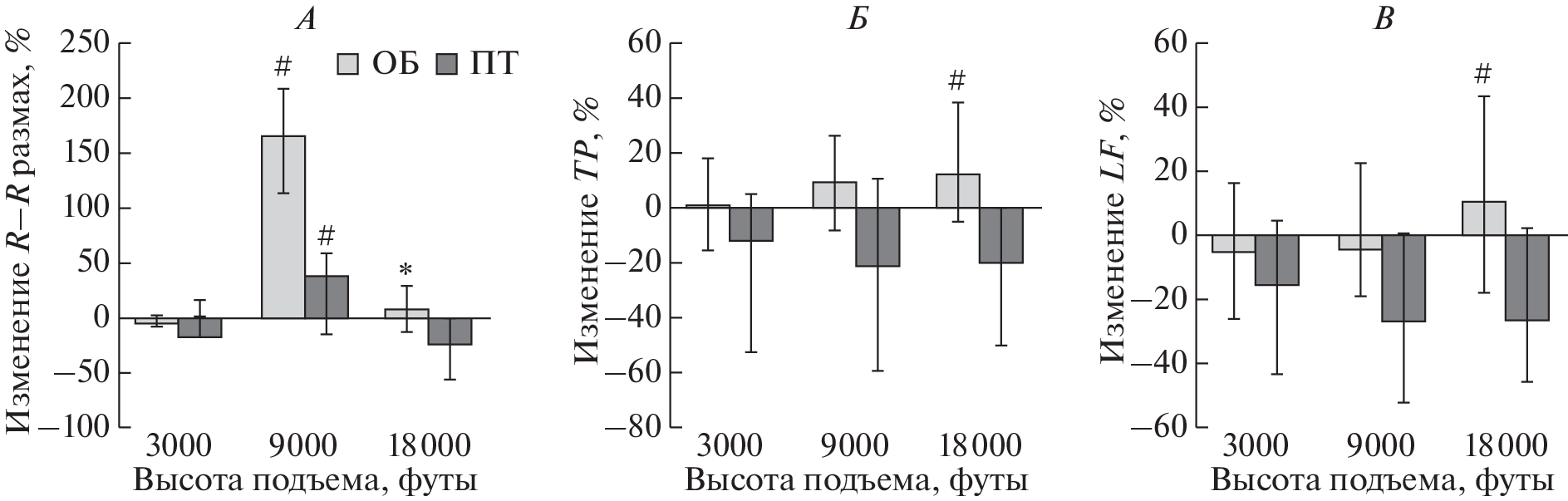 The aim of this work was to study the indicators of heart rate variability (HRV) under conditions of additional respiratory resistance (ADR), as an imitation of climbing to a height, in young men with different types of autonomic regulation. The study involved 715 young men aged 19 to 24 years. HRV parameters were assessed by the method of variational pulsometry (BioMouse). Each subject passed two tests lasting 5 min: background, and under conditions of DDS. An ETM 2.0 resistive mask was used to simulate climbing (ADS simulation), in three altitudes: 3000, 9000, 18000 feet. Each person performed only one test; the height of the lift was not reported to him. Based on the results of background testing, two groups were created: the OB group – with balanced sympathetic and parasympathetic influences on HRV (stress index 25–100 c.u., VLF above 240 ms2), the PT group – with a moderate predominance of parasympathetic (vagal) influences (stress index below 25 c.u., VLF above 500 ms2). In the background testing, the OB group was characterized by higher values of the Bayevsky indices (IVR, VPR, PAPR), reflecting the predominance of sympathetic tone, and the PT group had higher values of the variation range of the duration of R–R intervals, RMSSD, SDNN, pNN50%, which are considered markers of increased vagal tone, and the total power of the HRV spectrum TP. Under conditions of ADR, without taking into account the height of the simulated rise, in the OB group, an increase in indicators correlated with vagal activity was revealed: the range of R–R intervals, RMSSD, SDNN, the HF range in the HRV spectrum, with a decrease in the Baevsky indices (IVR, VPR, PAPR, stress index). The increase in spectral measures of HRV associated with sympathetic activity (LF%) ant TP reached the level of statistical significance only when simulating an ascent to an altitude of 18 000 feet. In the PT group, the changes were oppositely directed: a decrease in correlates of vagal activity and an increase in sympathetic tone, regardless of the height of the lift. However, in both groups, the range of R–R intervals increased the most at 9000 feet, which is critical for the development of mountain sickness. Differences in the autonomic regulation of the cardiovascular system in young men determine the direction and severity of shifts in HRV indicators when simulating a rise to a height. In the OB group under conditions of ADR, when simulating a rise to insignificant heights, the indicators associated with vagal activity increase, with an increase in the height of the rise, an increase in parameters reflecting the sympathetic tone joins them. In the PT group, an expected increase in sympathetic tone was found at all altitudes.
