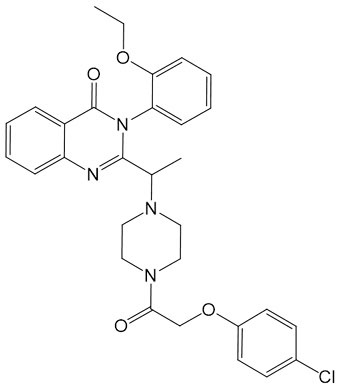 2-(3,5-Диметил-1H-пиразол-1-ил)-3-гидрокси6-хлорхиназолин-4(3H)-он (VIa). Выход 1.8 г (61.5%), бежевые кристаллы, т. пл. 197–198°С. Спектр 1H-ЯМР (DMSO-d6): 11.95 (с, 1H), 8.15 (д, J 2.5, 1H), 7.92 (ддд, J 8.7, 2.5, 0.7, 1H), 7.76 (д, J 8.7, 1H), 6.12 (д, J 1.0, 1H), 2.29 (д, J 0.8, 3H), 2.20 (с, 3H). Спектр 13C-ЯМР (DMSO-d6): 157.78, 149.85, 143.80, 143.37, 142.29, 134.73, 131.92, 129.73, 125.16, 123.11, 106.98, 13.23, 10.93. ESI-MS, m/z 291.4 [М + H]+. Найдено, %: C, 53.79; H, 3.86; N, 19.24. C13H11ClN4O2 (M 290.71). Вычислено, %: C, 53.71; H, 3.81; N, 19.27.