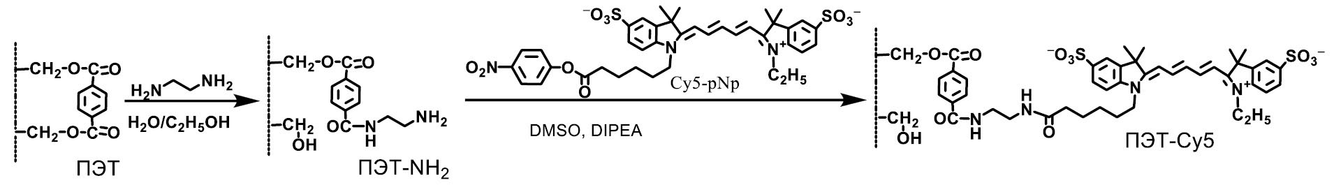 Цель данного исследования – разработка метода аминолиза поверхности ПЭТ-подложки и контроля химически доступных аминогрупп по связыванию с красителем Cy5 с флуоресцентной регистрацией результатов.