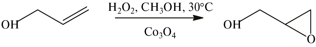 Известно, что Co3O4 наряду с такими оксидами, как Fe3O4 и Mn3O4, эффективен в образовании гидроксильных радикалов по механизму Фентона в ряде процессов окисления [30]. В связи с этим было принято решение испытать полученный описанным выше способом наноразмерный оксид кобальта в качестве катализатора в реакции эпоксидирования аллилового спирта в глицидол: