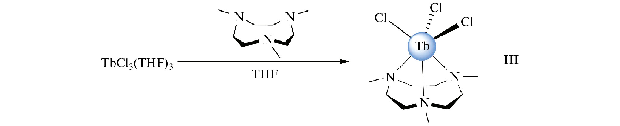 Взаимодействие Me3tacn с тетрагидрофуранатом хлорида тербия TbCl3(THF)3 в ТГФ приводит к образованию комплекса [TbCl3(Me3tacn)] (III) (схема 2). В индивидуальном виде III был получен перекристаллизацией из смеси ТГФ–гексан в соотношении 1 : 1. Комплекс III умеренно растворим в ТГФ и пиридине, но не растворим в углеводородных растворителях.