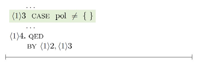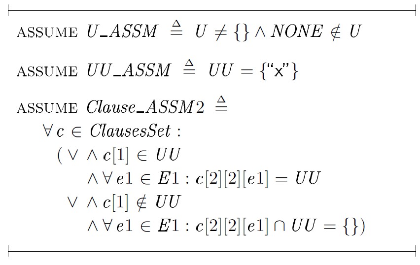 Далее в пояснениях к выражениям TLAPS в некоторых случаях вместо compareClause(·) и comparePol (·) будем использовать оператор.