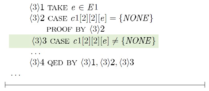 Доказательство шага ⟨2⟩3 очевидно, оно следует из определения substMap3Equality(·) и истинности c1[1] = c1[1]. Шаг ⟨2⟩4 также не требует доказательства. Для доказательства шага ⟨2⟩3 интересен случай, когда c1[2][2][e] ≠ NONE.