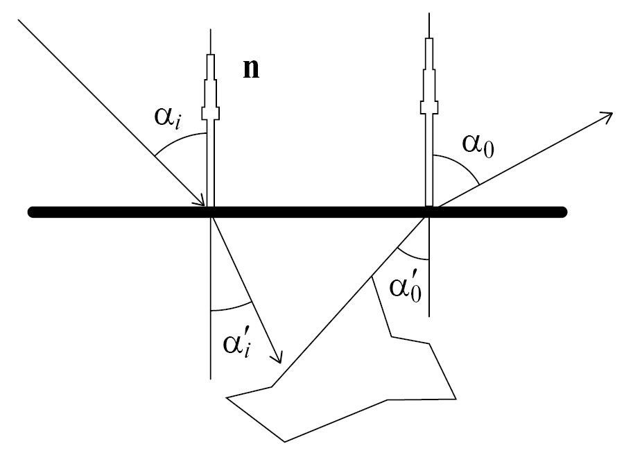 где αi′ и αo′ углы преломления лучей с нормалью к поверхности (рис. 1).