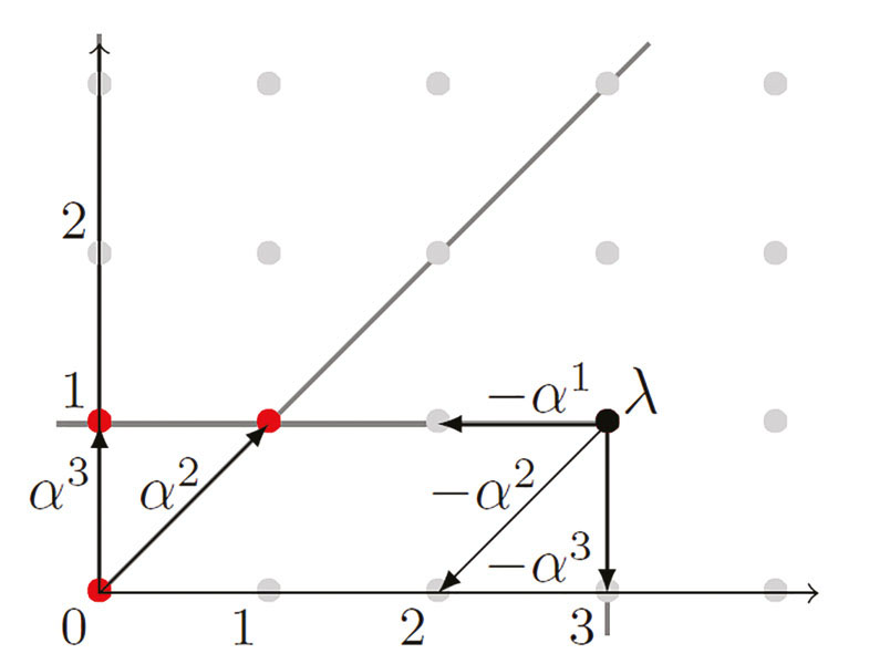 тогда , , , , A, A1, A2, A3 — матрицы, составленные из данных векторов соответственно, и K, K1, K2, K3 — целочисленные конусы, натянутые на вектора из данных наборов соответственно.