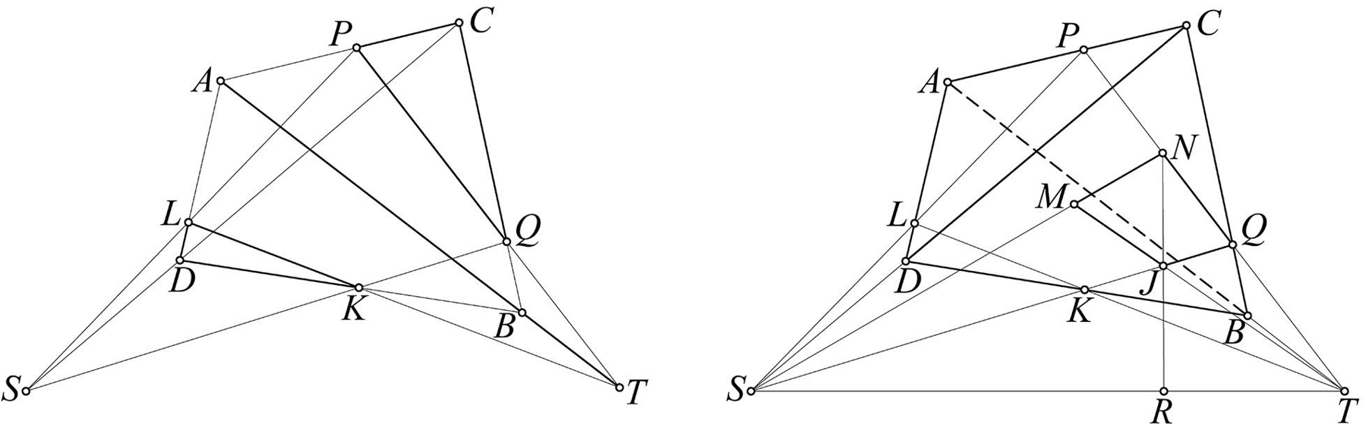 Рис. 3. Геометрическая схема моделирования дуги обвода на основе конфигурации Дезарга.