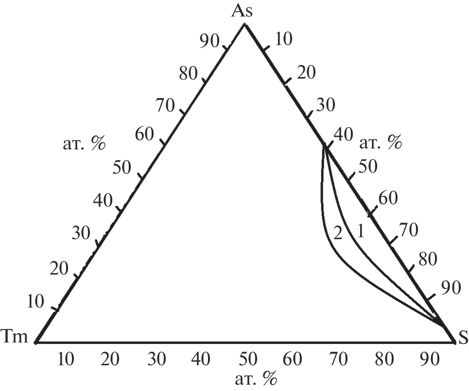 Граница области стеклообразования в тройных системах Tm–As–S и Tm–As–Se