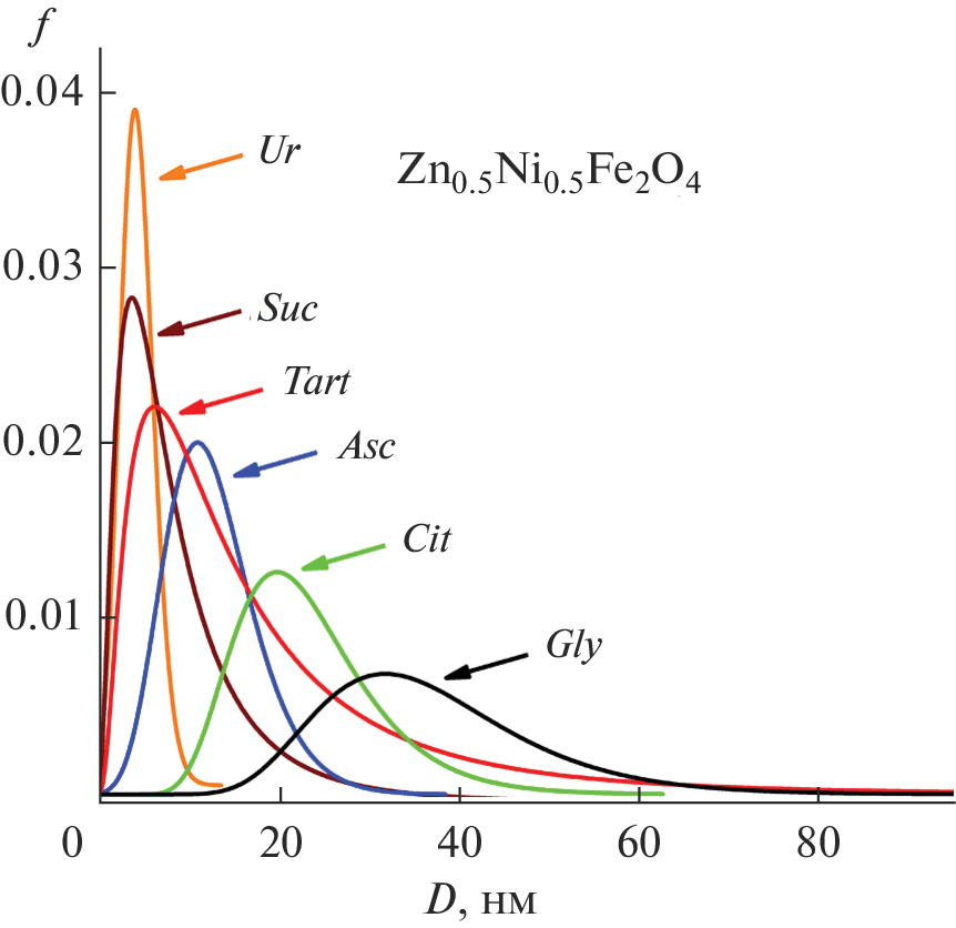 Nickel-zinc ferrites, which have pronounced ferrimagnetic and semiconductor properties, can be used as promising magnetically controlled photocatalysts for the purification of aqueous media from organic pollutants. The value of the specific surface area largely affects the photocatalytic properties of the material; therefore, the possibility of its control and variation at the stage of synthesis is of great scientific and technical interest. In this study, nanocrystalline ferrite of the Zn0.5Ni0.5Fe2O4 composition is obtained under conditions of solution combustion using various types of organic fuel as the main factor affecting the formation of the specific surface area, and subsequent heat treatment in air at a temperature of 500°C for 2 h. The crystal structure, chemical composition, and morphology of Zn0.5Ni0.5Fe2O4 are studied by methods of X‑ray phase analysis, X-ray spectral microanalysis, and scanning electron microscopy. The values of the specific surface area of the synthesized nanopowders are calculated based on the method of liquid-phase adsorption from a Methylene Blue solution and the low-temperature adsorption-desorption of nitrogen. The results of the X‑ray phase analysis show that a single-phase nanocrystalline product with a spinel structure is formed, where the average crystallite size varies within 11–23 nm and is inversely related to the value of the specific surface area, respectively, after the reaction with succinic acid (39.1 m2/g) and with glycine (20.2 m2/g). It is established that the choice of the fuel largely affects the formation of nanocrystals and the specific surface area of the samples, and the approach used makes it possible to control its values.
