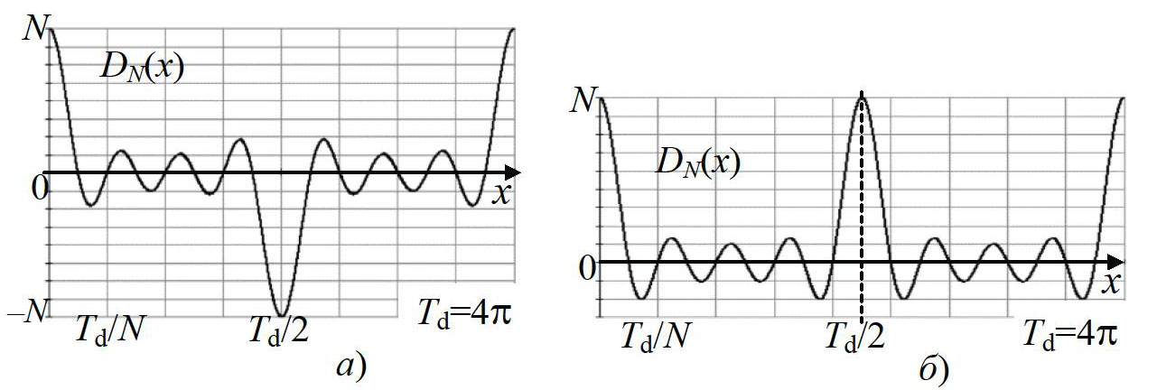 В рамках статьи за период (1) принято одинаковое значение Td = 4π для равноамплитудных полиномов и с четными, и с нечетными N (см. рис. 1).
