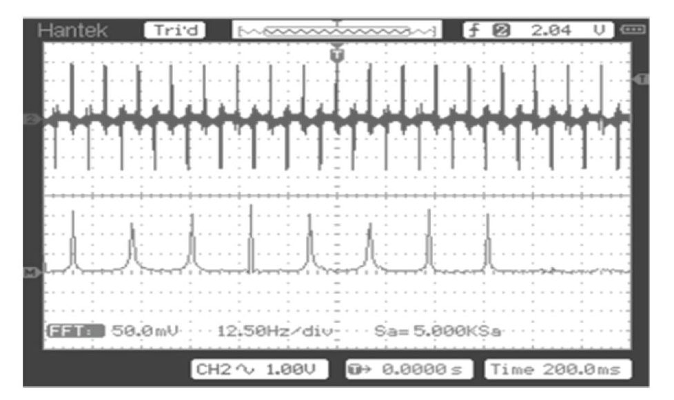 Обеспечить длительность подвергаемого ДПФ фрагмента T, строго удовлетворяющую условию (4), технически возможно, если воздействовать дополнительным тактовым сигналом с тем же периодом Td, или кратно меньшим ему на вход синхронизации цифрового осциллографа, выполняющего Фурье-анализ.