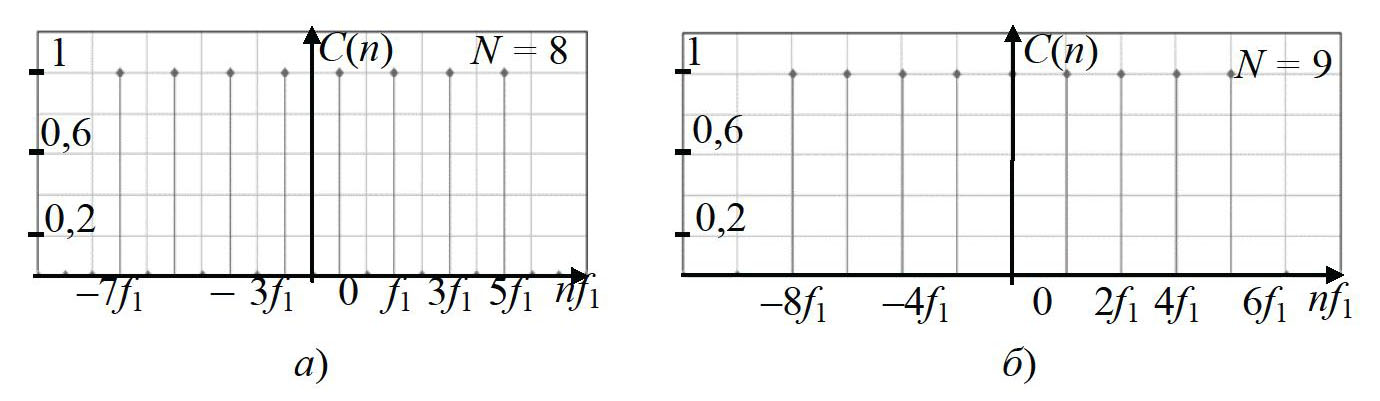 – f = (2k + 1)∙f1 при четных N (рис. 11, а);