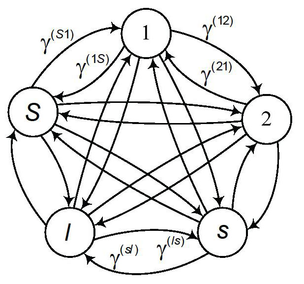 Рис. 1. Граф переходов сигнально-помеховых ситуаций