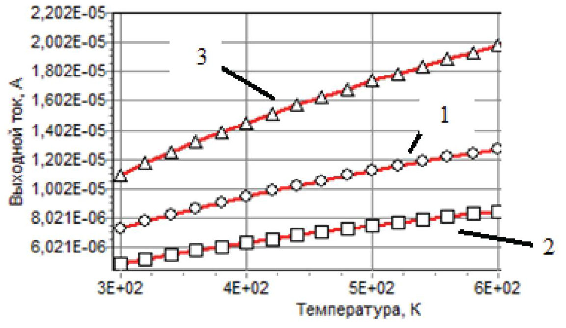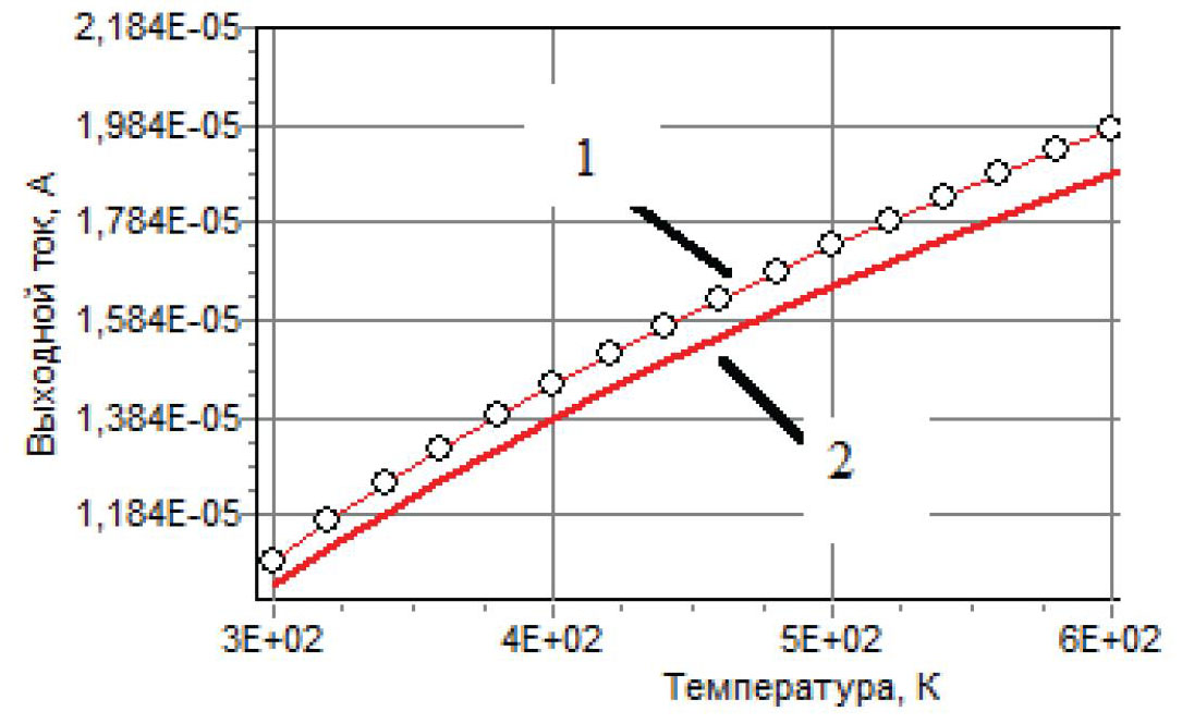 Для ПИП температуры разработана модель, описывающая выходную характеристику – зависимость тока стока от температуры [9]