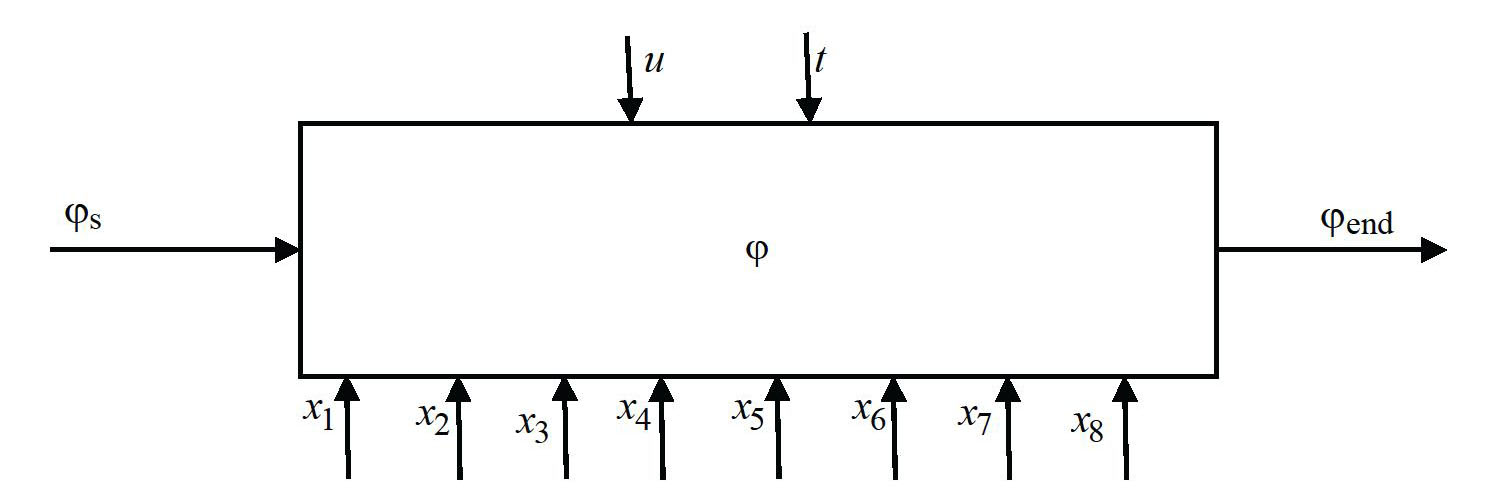 In the considered case, the multitude of situations S can be referred to the available trajectories of moisture content change along the length of the industrial equipment, that is, we can express S(·) = (φs, φend).