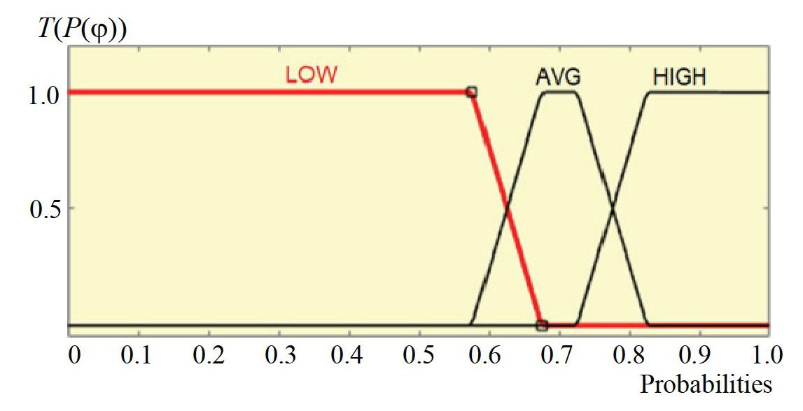 Fig. 3. Fuzzy regions of Bayesian probability to reach the required humidity at the output