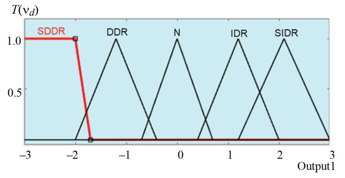 Note: The following linguistic variables are used here SDDR – strongly decrease the drum rotation speed; DDR – decrease the drum rotation speed; N – leave the drum rotation speed unchanged; IDR – increase the drum rotation speed; SIDR – strongly increase the drum rotation speed.