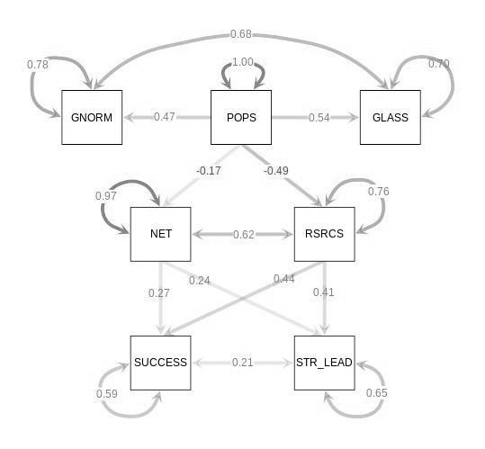 Рис. 4. Структурная модель с исключением связей гендерного неравенства с возможностями нетворкинга и доступностью ресурсов организации