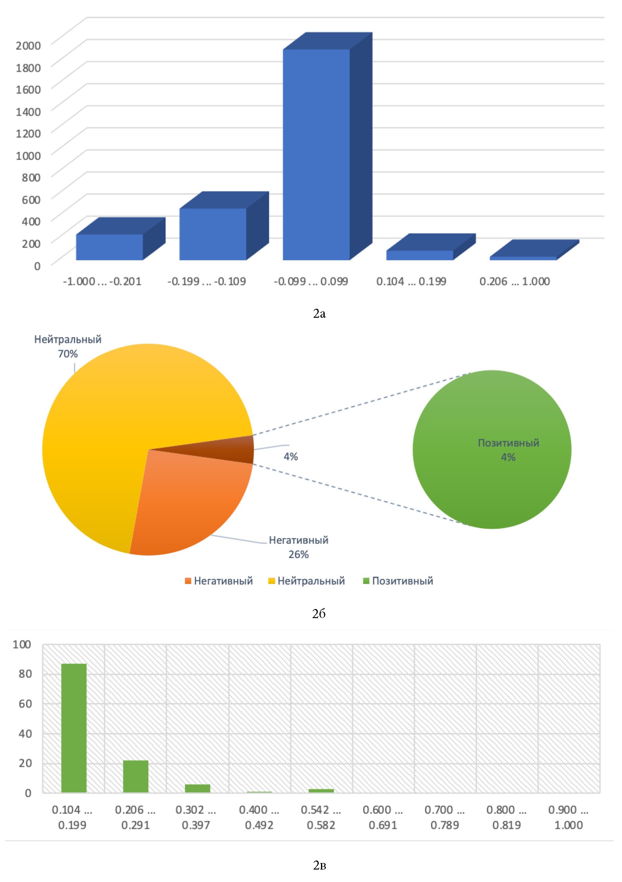 Рис. 2. Распределение результатов оценки эмоционального фона слов о Петре I в сообщениях пользователей социальной сети “ВКонтакте”