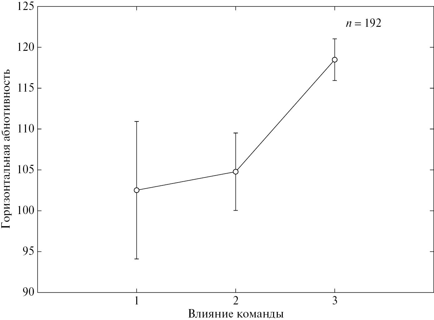 Рис. 5. ANOVA однофакторный. Влияние команды на горизонтальную абнотивность