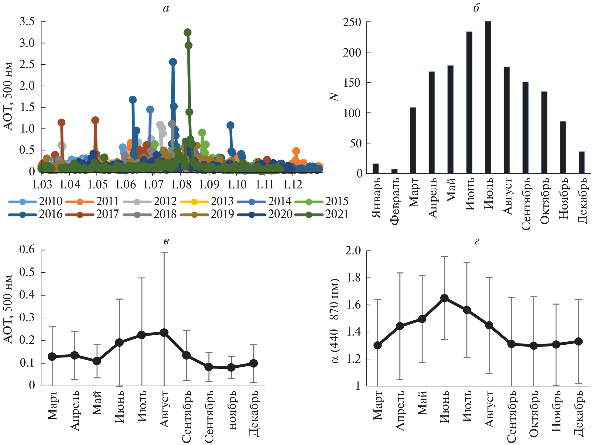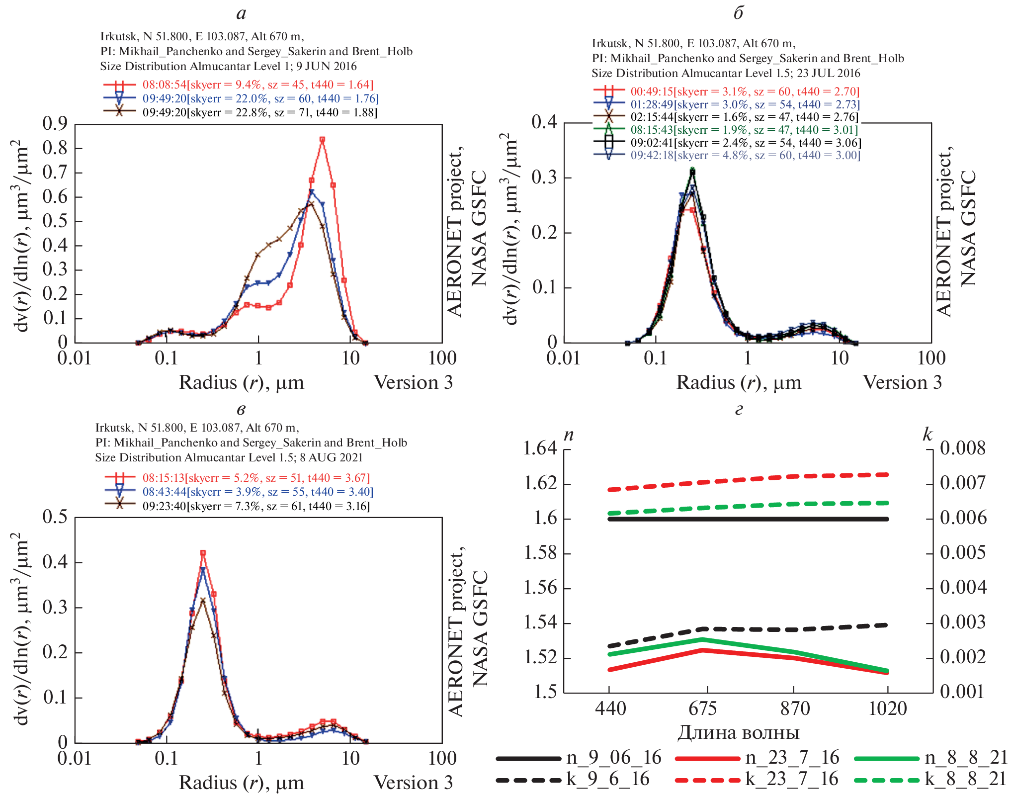 - Schuster G.L., Dubovik O., Holben B.N. Angstrom exponent and bimodal aerosol size distributions // J. Geophys. Res. 2006. V. 111. P. 1–14. D07207. https://doi.org/10.1029/2005JD006328.