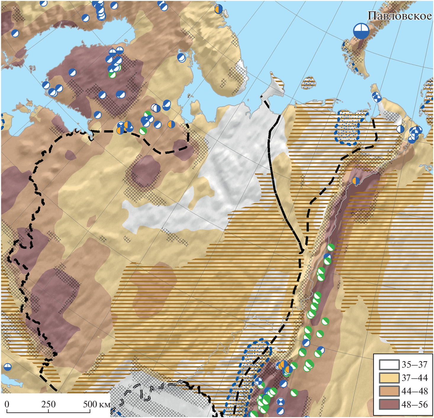 - Artemieva I.M., Meissner R., 2012. Crustal thickness controlled by plate tectonics: a review of crust–mantle interaction processes illustrated by European examples // Tectonophysics 519. 3–34.