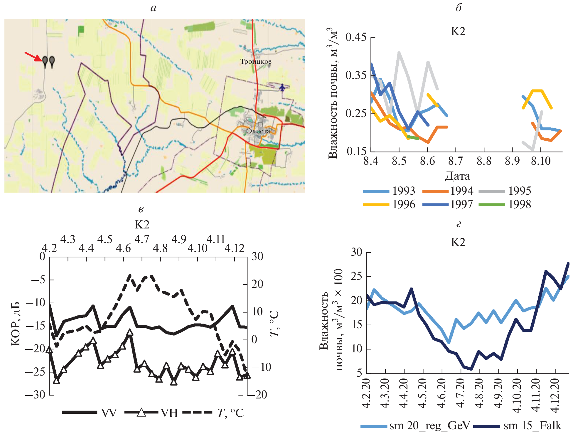 - Blumberg D.G., Freilikher V., Lyalko I.V., Vulfson L.D., Kotlyar A.L., Shevchenko V.N., Ryabokonenko A.D. Soil moisture (water-content) assessment by an airborne scatterometer // Rem. Sens. Environm. 2000. V. 71. P. 309–319.