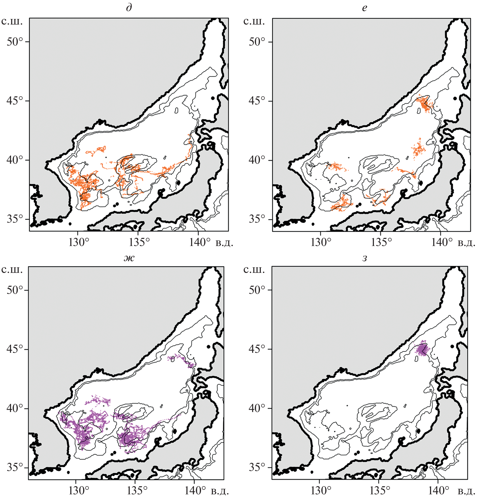 - Prants S.V., Budyansky M.V., Uleysky M.Yu. Statistical analysis of Lagrangian transport of subtropical waters in the Japan Sea based on AVISO altimetry data // Nonlinear Processes in Geophysics. 2017. V. 24. P. 89–99.