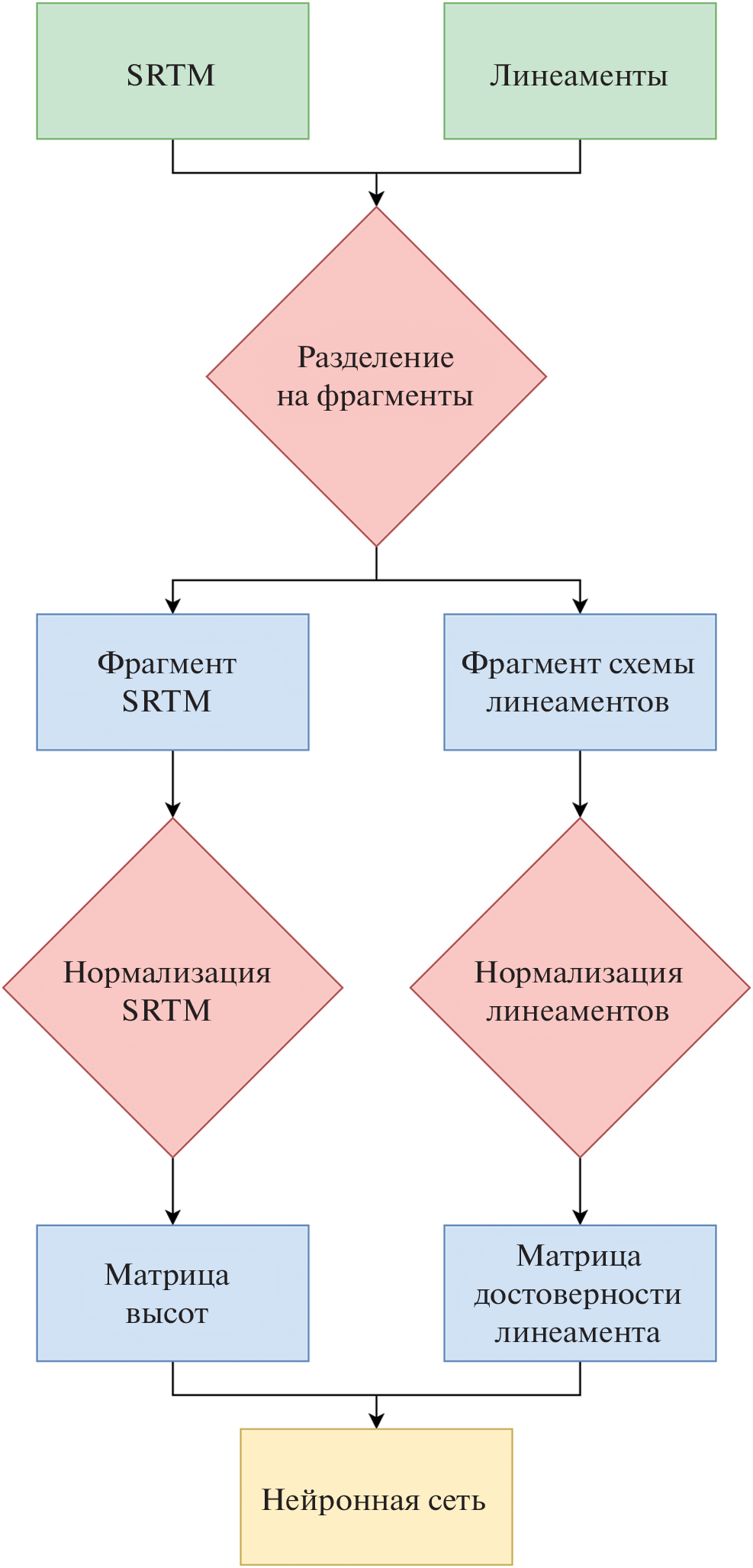 The purpose of the scientific work is to study the potential of neural network technologies in the field of extracting linear structures from digital terrain models SRTM. Linear structures, also known as lineaments, play an important role in the verification of known faults, the identification of fault-fracture structures, the detailing of the framework of discontinuous faults, as well as in the exploration of minerals. Their accurate and effective extraction in solving the designated tasks is of fundamental importance. The use of neural network technologies provides a number of advantages over sequential algorithms, including the ability to search for universal criteria for selecting lineaments based on a training sample. The paper considers a comprehensive innovative methodology that includes several key stages. The first stage is the author’s method of data preparation, which helps to ensure the quality of the training sample and minimize the impact of noise. The second stage is to develop an algorithm for vectorizing the results of the neural network, which allows you to easily export the results (lineaments) to a geographic information system (GIS). The third stage provides a method for minimizing the noise component of the training sample and optimizing the selection of synaptic weighting coefficients by retraining the neural network using simulated data reflecting various localization conditions of the lineaments. To verify the results obtained, a spatial comparison of linear structures extracted by a neural network and lineaments isolated by the operator was carried out. The results of this comparison demonstrate the high potential of the proposed approach and show that the use of neural network technologies is an actual and promising approach to solving the problem of extracting linear structures from digital terrain models. Positive conclusions are made about the expediency of using the results obtained for their practical application in the field of Earth sciences.