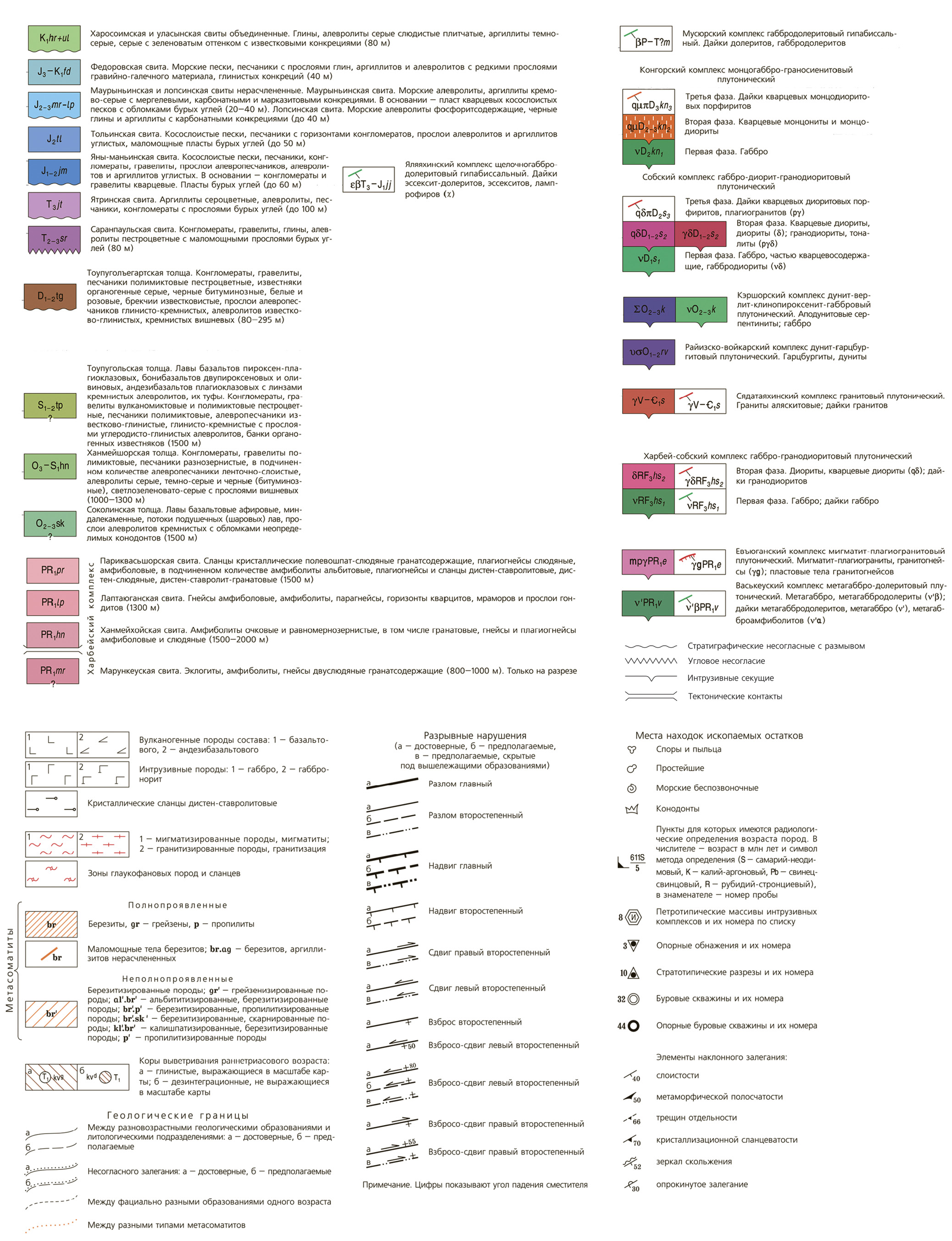 Рис. 1. Новогодненский район. Геологическая карта масштаба 1:200 000. а – условные обозначения к рисунку 1.