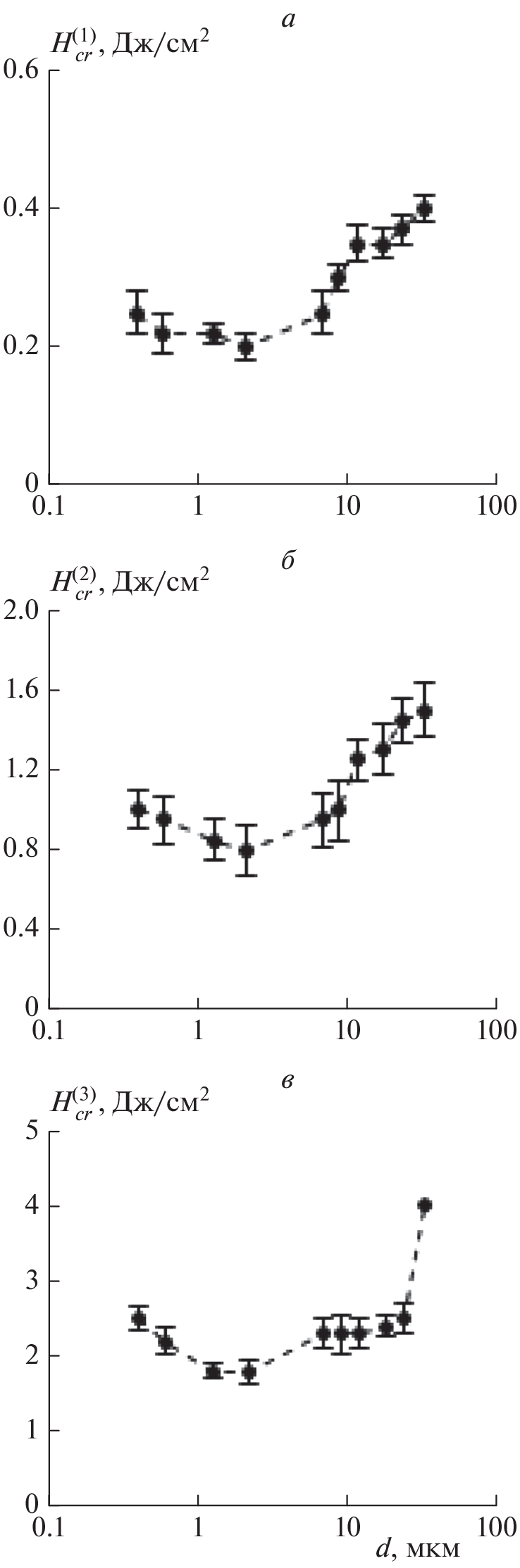 The ignition of microparticles of low-metamorphosed (long-flame gas grade (LFGG)) coal for fractions with a distribution in the size range d = 0.4–33 µm under the action of laser pulses (1064 nm, 120 µs, 1.3 J) is studied. The coincidence of the kinetic characteristics of coal ignition under the action of laser pulses with different energy densities on samples in both narrow and wide particle size ranges is established. The minimum values of the three threshold planes of laser energy studied for the stages of ignition are obtained for the fraction of coal particles with a size of 2.2 μm. When working with coal dust, it should be taken into account that when exposed to thermal energy sources, particles of 1 to 10 microns are the most easily flammable.