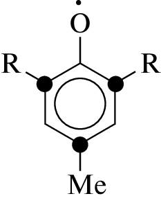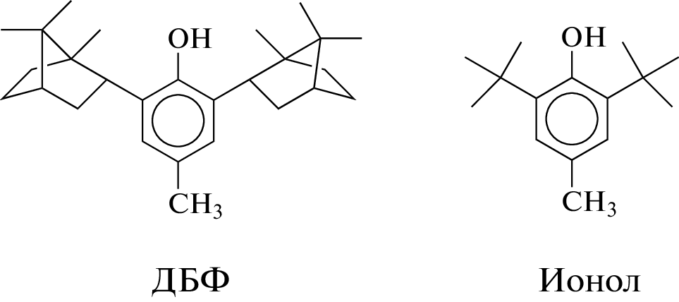 phenoxy radicals of DBP are dimerized with the formation of the p-C,O-dimer, while In• ionol predominantly