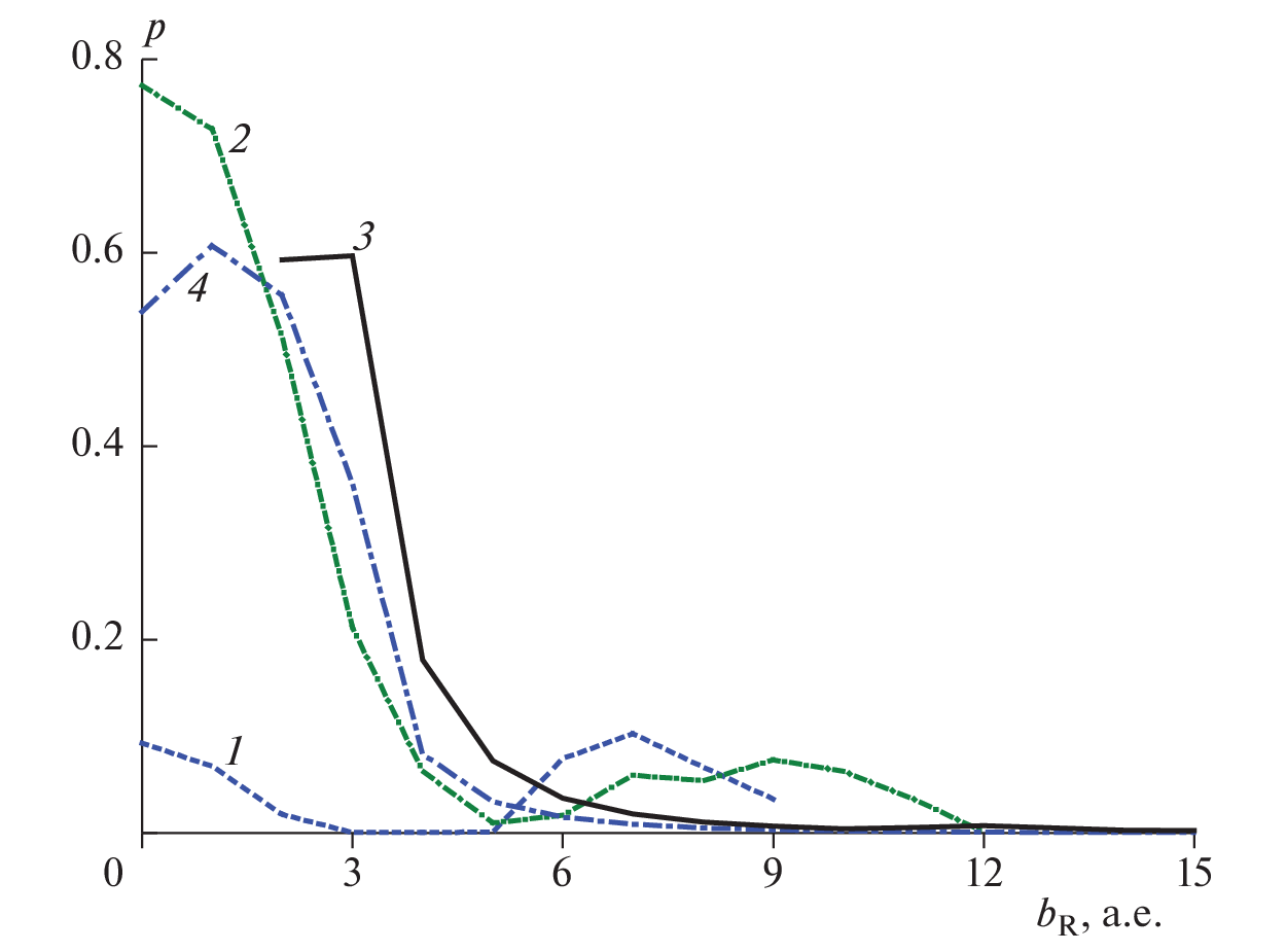 R → CsBr + R (R = Kr, Xe, Hg) in the case where the encounters of the Cs+ and Br– ions are central and the
