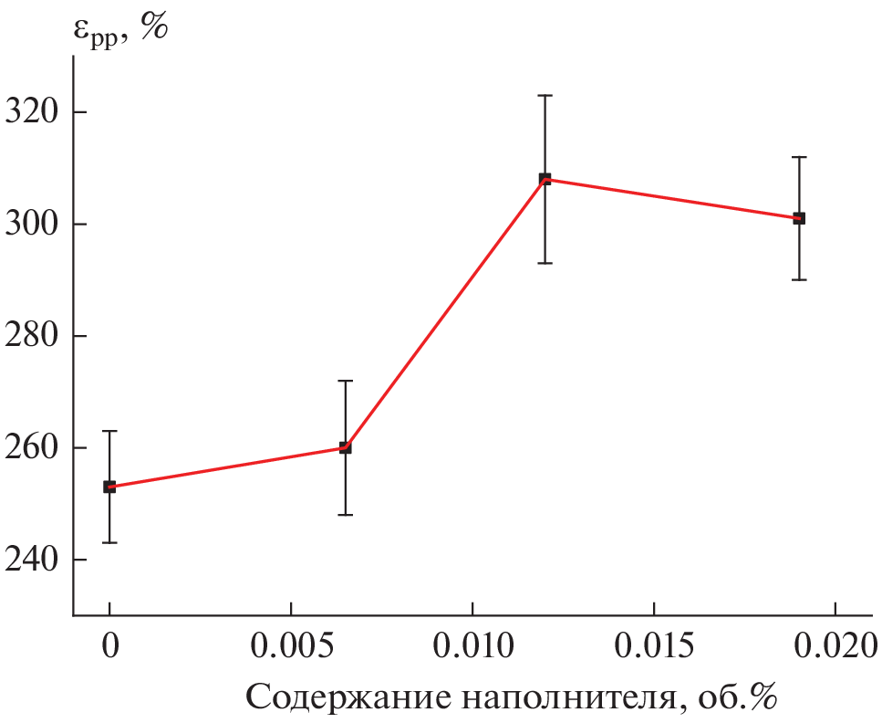 to unfilled UHMWPE with a subsequent decrease. The relative elongation changes in a similar way.